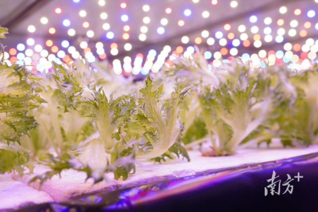 来自台湾的农业智慧跨越山海,来到广东,落到农户的手中,种出更多绿色、有机的农产品。 “绿”贯穿着整个海峡两岸农业科技馆,馆内的另一家“灯光如昼”的农企也吸引了不少观众驻足。为提供植物工厂打通“最后一公里路(Last Mile)”的综合服务商多乐田在馆内展示了旗下品牌sooth-road蔬食乐的“太空蔬菜”。