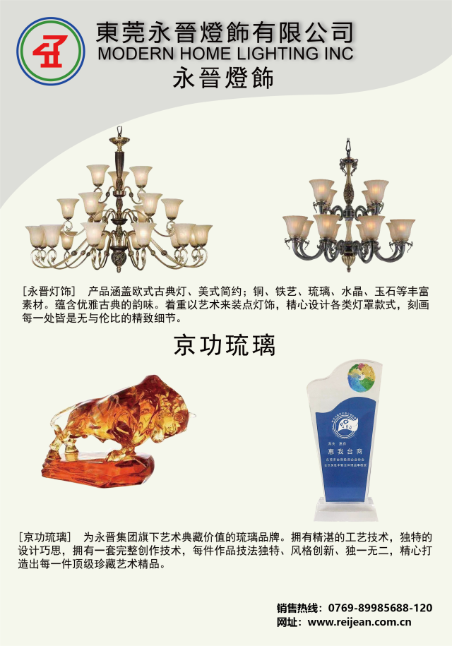 隶属永晋集团的永晋灯饰是台博会的“老朋友”,集产品研发、制造、营销、服务为一体,此前曾多次携最新产品亮相台博会。永晋灯饰专注于欧美现代灯饰的设计制造,构建了丰富多元的产品矩阵,产品覆盖欧式古典灯、壁灯等品类,巧妙融合铜、铁艺、琉璃、水晶、玉石等多种优质材料,打造了功能性与艺术性兼备的灯饰精品。 本次参展的还有永晋集团旗下的琉璃品牌——京功琉璃。京功琉璃依托卓越的工艺技法与独出心裁的设计巧思,构建起一套成熟的创作体系。每件作品均以独特技法铸就,以创新风格呈现,使得每件产品都将成为独一无二的存在。