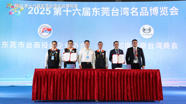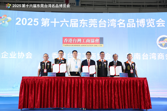 携手签约!东莞台商在台博会再扩“朋友圈”来源:南方+ 9月11日,2025第十六届东莞台湾名品博览会(下称“东莞台博会”)在广东现代国际展览中心开幕。本届台博会以“强链融合 智创未来”为主题,当天上午“携手并进,共创未来——产业合作战略签约仪式”在展会现场举行,释放出台商台企积极拓展合作、聚力创新发展的强烈信号,进一步彰显两岸经贸合作的韧性与活力。 东莞市委台港澳办三级调研员周懿、东莞市台商投资企业协会会长陈宏钦、台湾区发动机工业协会理事长李进玉、印度清奈台湾商会会长张森凯、香港台湾工商协会会长刘孝超等嘉宾共同出席活动,见证多方战略合作协议的签署。